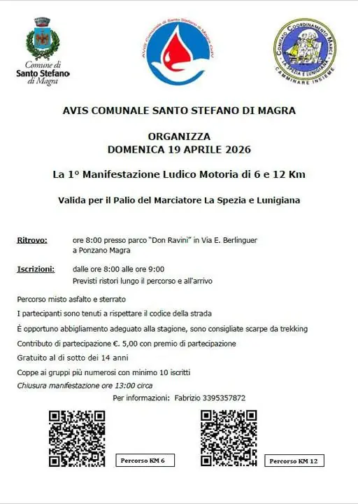 1° Manifestazione Ludico Motoria Avis Comunale Santo Stefano di Magra (Ritrovo ore 8.00)
